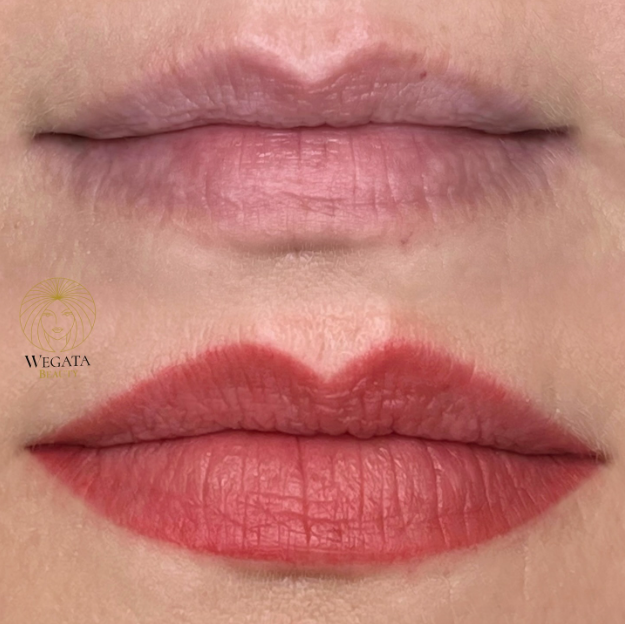 In den ersten 5–10 Tagen verleiht die Pigmentierung deinen Lippen einen intensiven Ton. Danach hellt die Farbe etwas auf. Nach ca. 4 Wochen siehst du das finale Ergebnis.